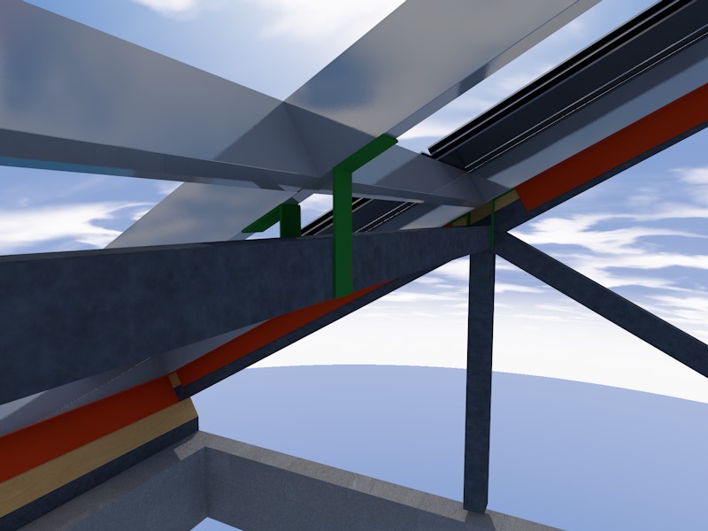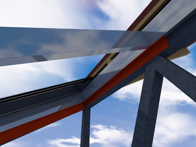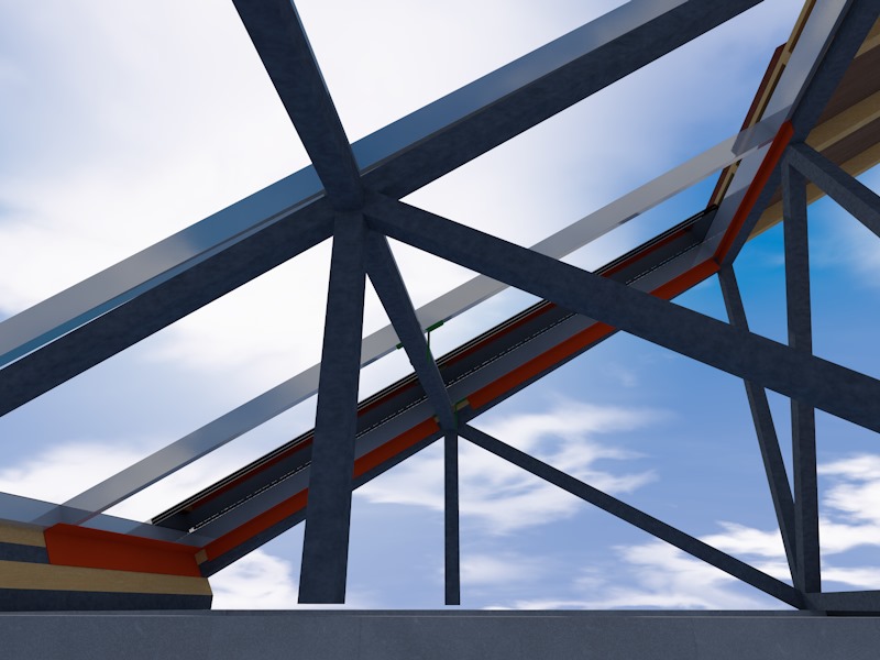 U suradnji s kooperantom Prozorski sistemi d.o.o. izrada, dostava i montaža alu fasadne krovne stijene. Stijena se sastoji od 12 fiksnih polja nagnutih pod kutem od 61° izrađenih od profila sa prekinutim termičkim mostom. Ostakljenje je trostruko IZO staklo: 8mmESG + 14mm + 6mm + 14mm + 33.1mm VSG.
